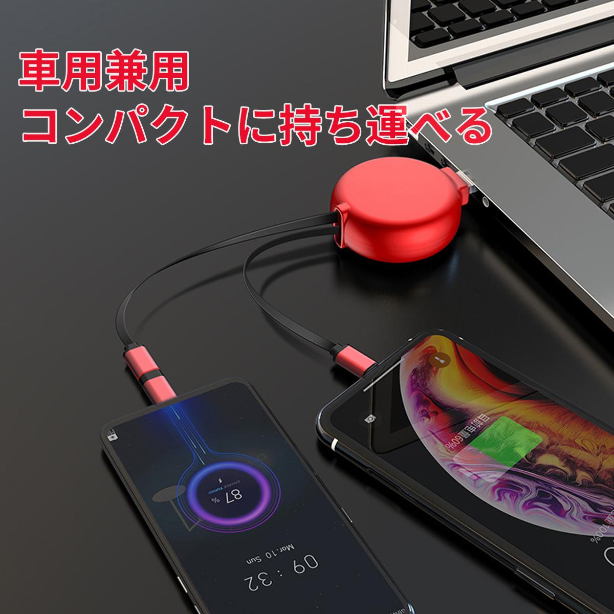 | 商品名 | 3in1 リール式充電ケーブル |