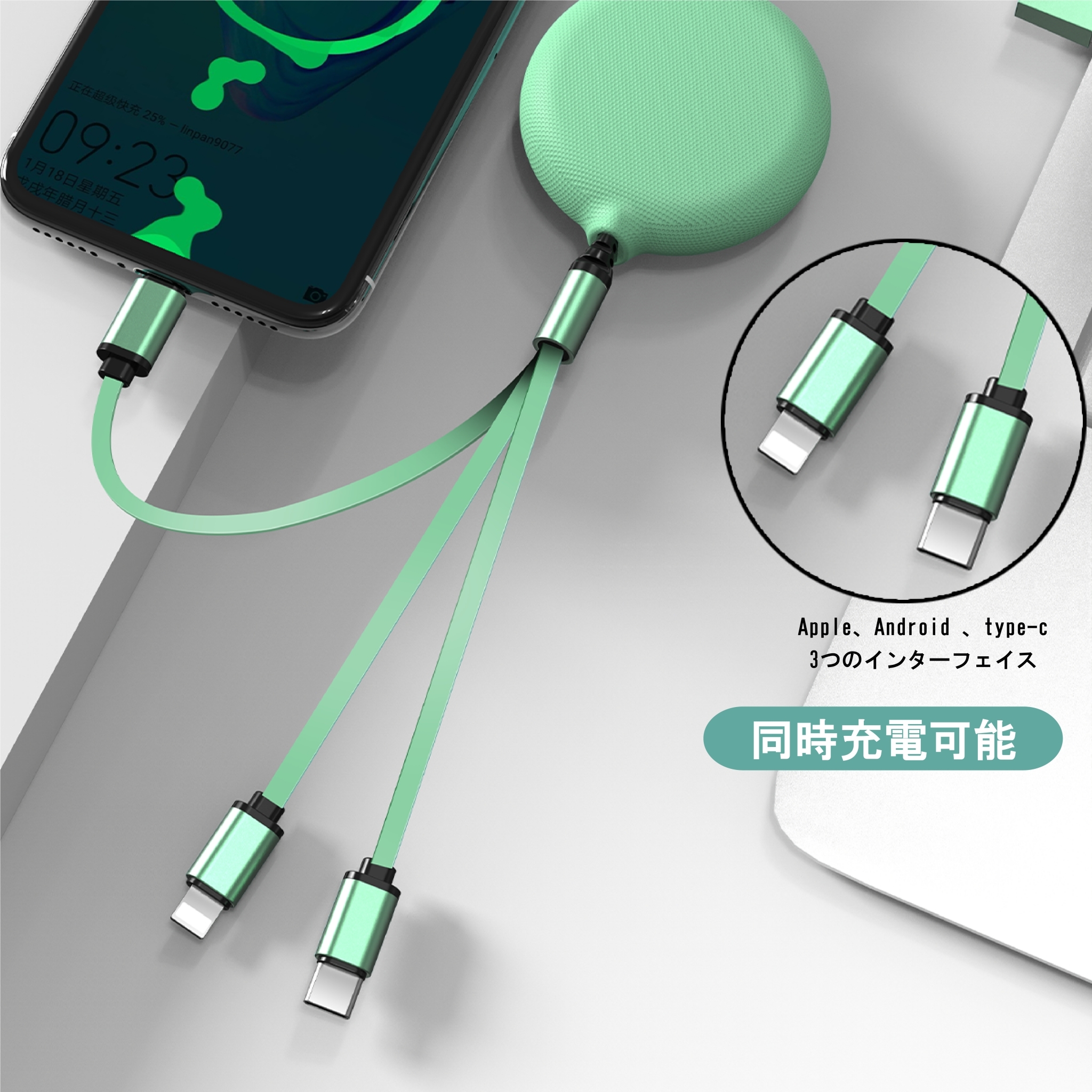 1つのコードで3タイプ同時充電が可能!!可愛い3カラー