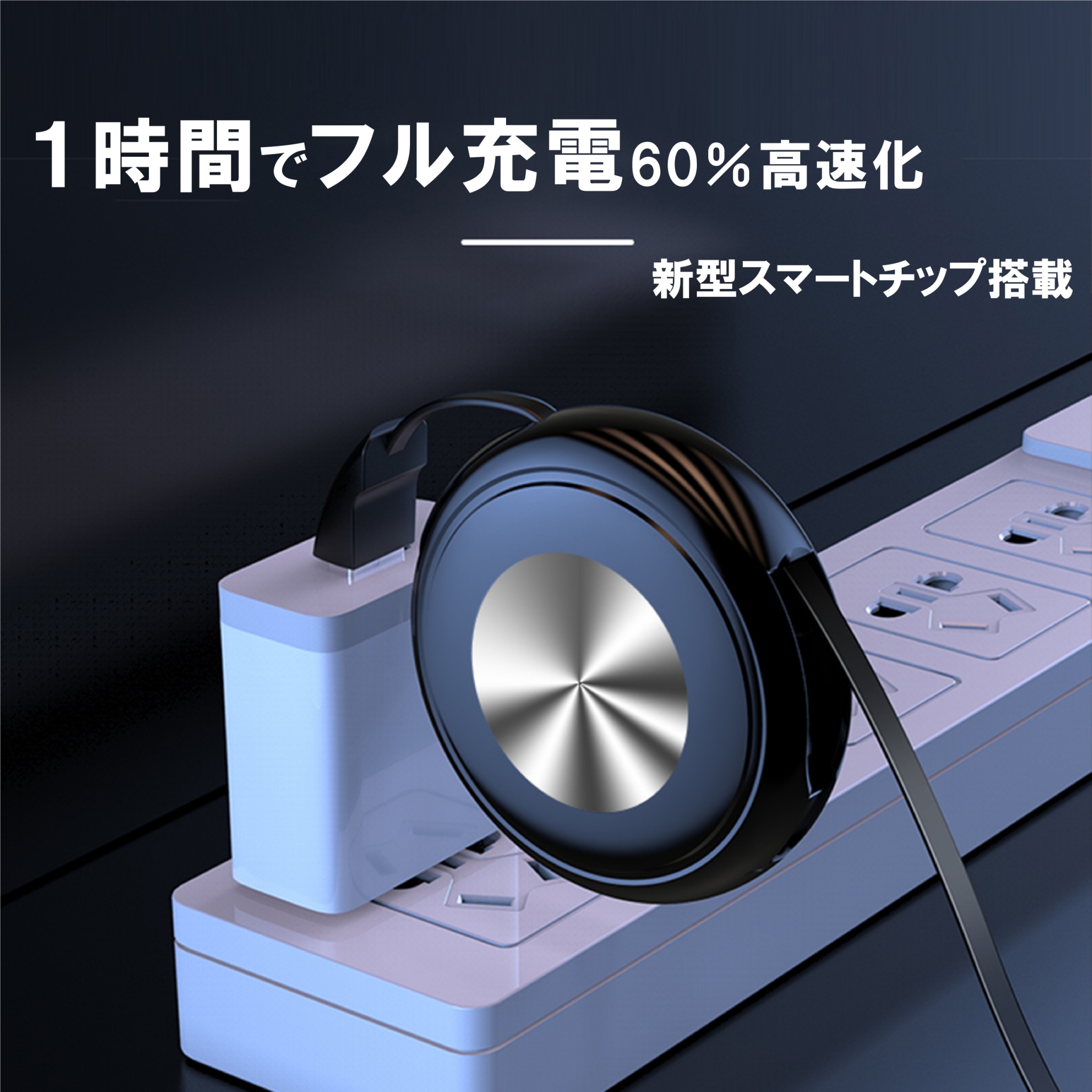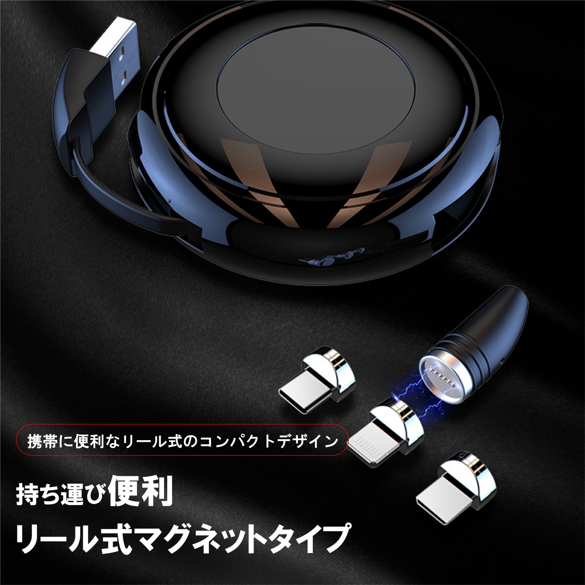 本制品は最新型モデルで、車上充電ケーブルは磁気吸着ヘッドを含む黒色で3種類のコネクタを備えた設備で充電することができ、ケーブルを別途購入する必要がなく、コストパフォーマンスが高い、 リール式のデザインで伸縮自在、収納しやすく、旅行、オフィス、自動車、業務旅行などに適しています。このケーブルはmicro USB、IOSとtype-cがあって便利です。1つのUSBポートで3つのデバイス(IOS 1個+ Micro 1個+ type-c 1個)を同時に急速充電できるほか、3種類のコネクタを搭載しており、市場のほとんどの機種に対応できます。